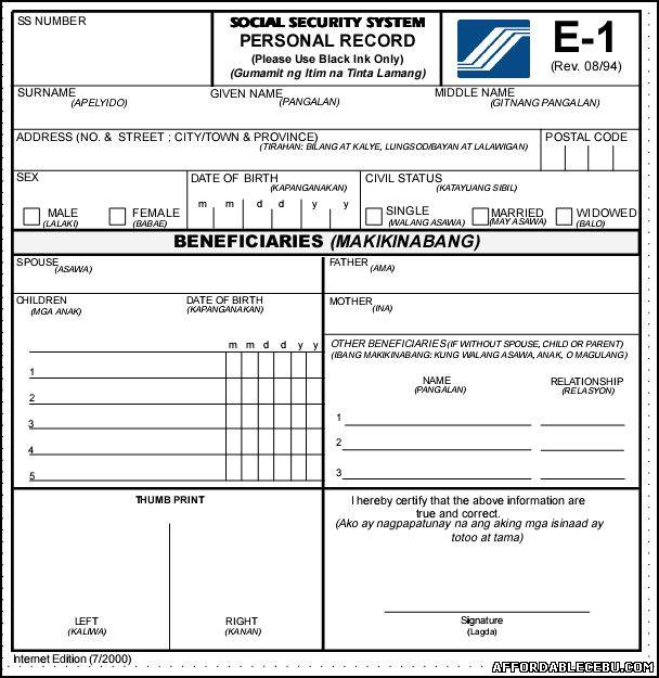 Social Security System SSS E1 Form